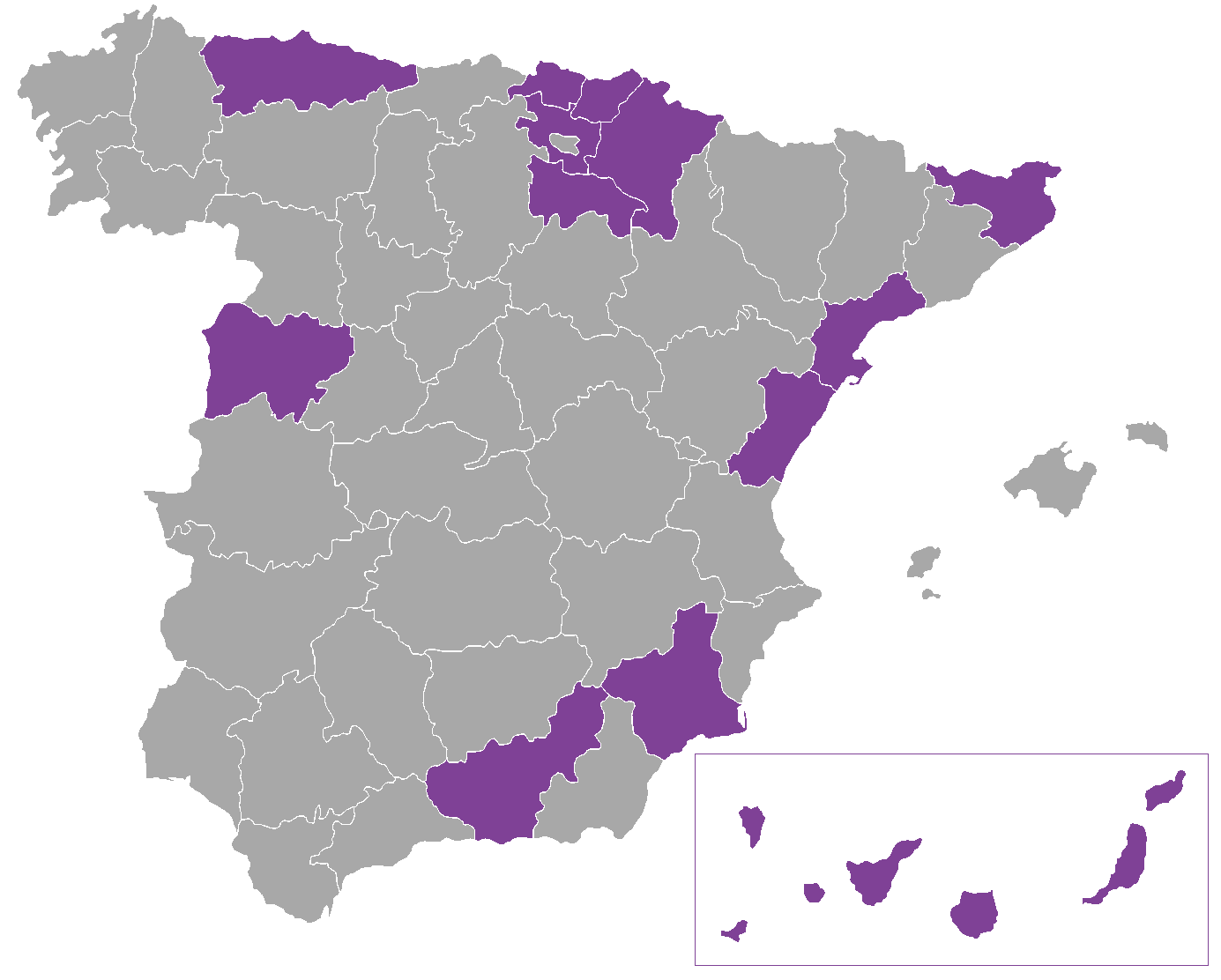 En la actualidad, existen en España 11 RCP cuyos datos están incluidos en la publicación de referencia Cancer Incidence in Five Continents -editada por la International Agency for Research on Cancer (IARC)-: Asturias, Castellón, Girona, Granada, Islas Canarias, La Rioja, Murcia, Navarra, País Vasco, Salamanca y Tarragona. En su conjunto, abarcan una población aproximada de 12 millones, lo que representa el 24% de la población española. Esta situación es similar a la de otros países del sur de Europa próximos en geografía y cultura, tales como Francia e Italia, cuyos registros cubren aproximadamente un 20% de la población total, estando generalmente ubicados en áreas de población cercanas al millón de habitantes.